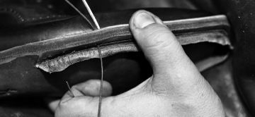 Ručně šitá bota je definována tím, že vrch boty je s podrážkou spojen ručním šitím do rámu.